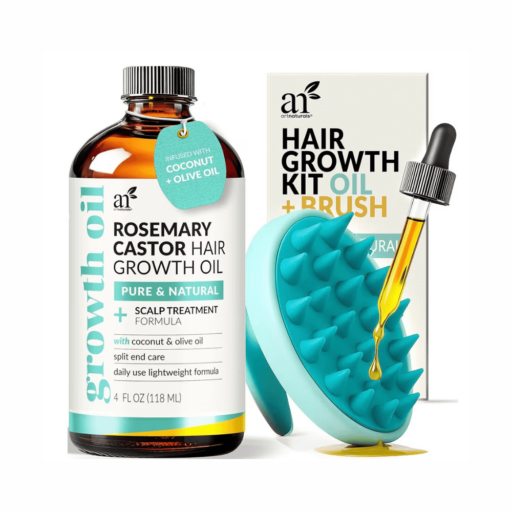 Este producto de artnaturals combina principalmente aceite de romero orgánico, aceite de ricino orgánico (castor), aceite de coco orgánico y aceite de oliva orgánico, con toques de lavanda en algunas versiones.