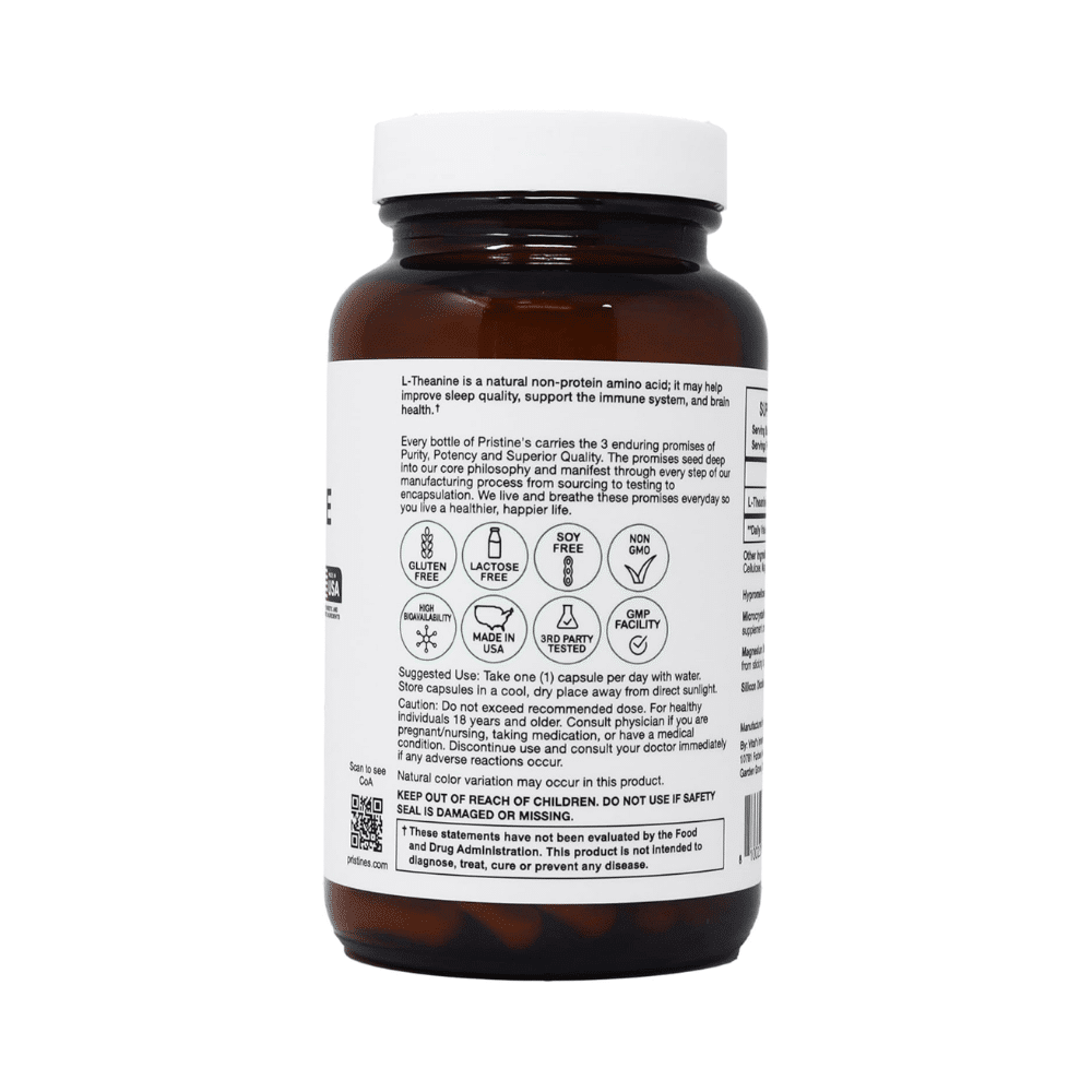 Los suplementos de L-Theanine de Pristine se someten a pruebas de calidad, pureza y potencia para garantizar un producto seguro y confiable.