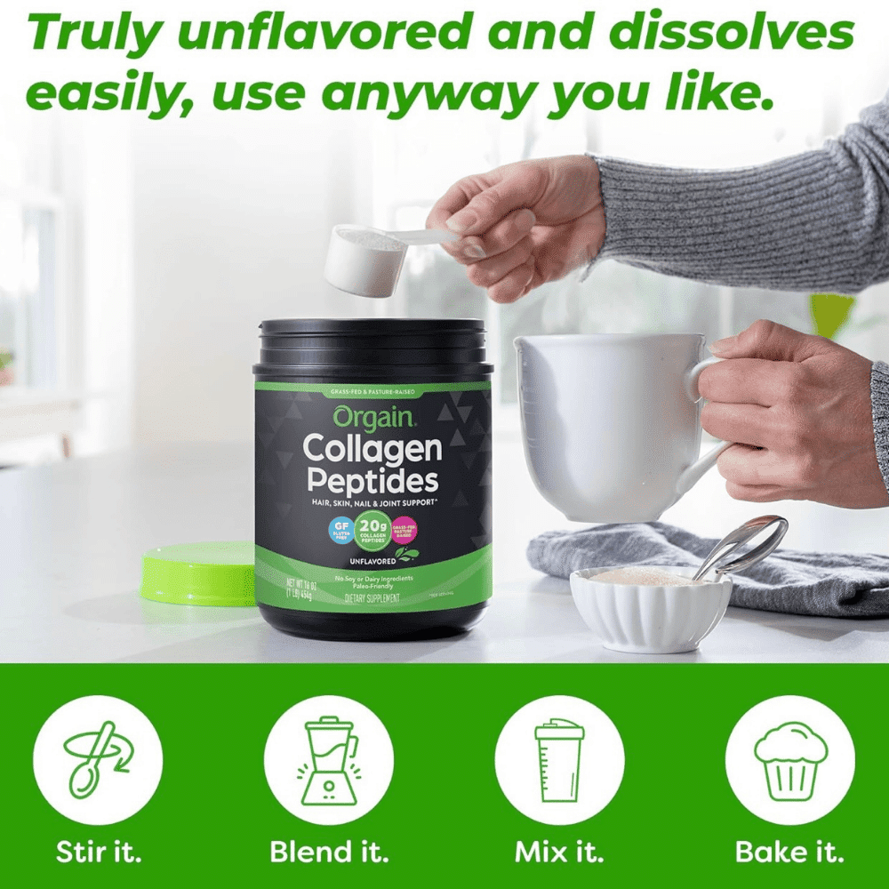 Apoya la piel radiante, el cabello y las uñas fuertes, la función y la salud de las articulaciones, y se mezcla fácilmente en cualquier alimento o bebida.